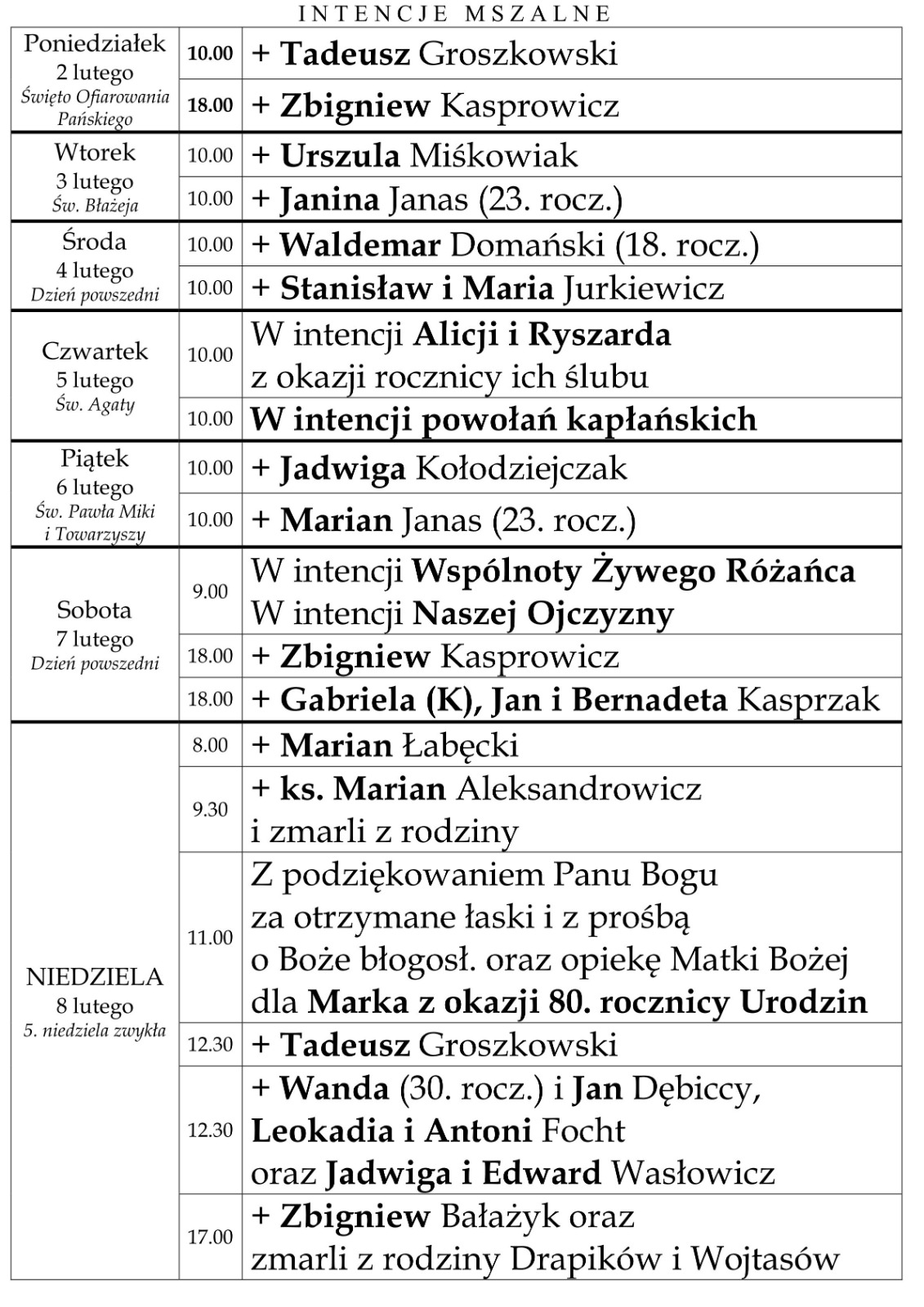Intencje Mszalne